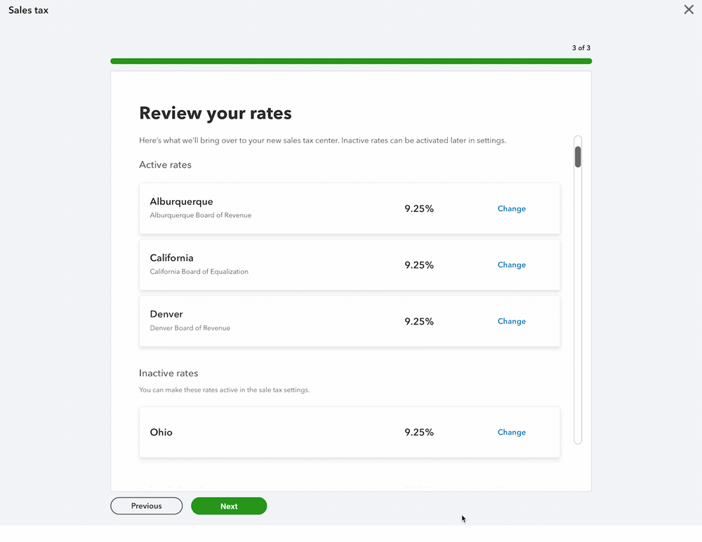 The sales tax system I designed for Intuit had a preview feature that allowed users to review their actions before continuing. We included a simple walkthrough to give users a preview of where they would be landing.